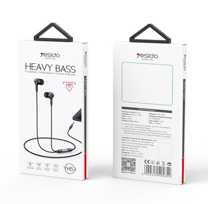 YH53 headphones equipped with a 3.5mm Aux connector from YESIDO are a high-quality in-ear, wired audio product with music playback and calling capabilities. Built-in 10mm drivers offer clear sound (3-5mW), ideal for everyday use. The 1.2 m cable maximizes user convenience. They reproduce any sounds within the range of 20 Hz to 20 kHz.