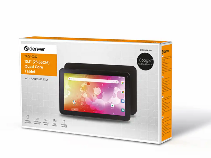 DENVER TAQ-10252 nodrošina vienmērīgu veiktspēju ar 10,1 collu displeju, četrkodolu procesoru un Android 8.1 GO — ideāli piemērots pārlūkošanai, straumēšanai un ikdienas uzdevumiem.