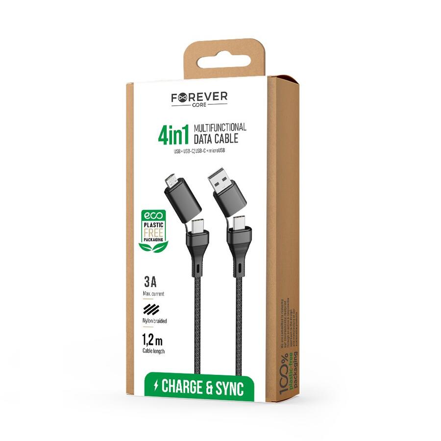 Forever CORE 4in1 USB + USB-C - USB-C + microUSB Cable 1.2m
