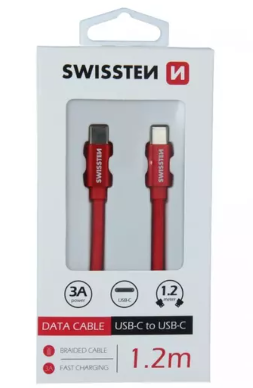 High quality textile data cable USB-C / USB-C with length of 1,2 m.  The cable reinforced to deliver a higher current (up to 3A) and can handle fast 480 Mb/s data transfer. Packed in Swissten retail pack.