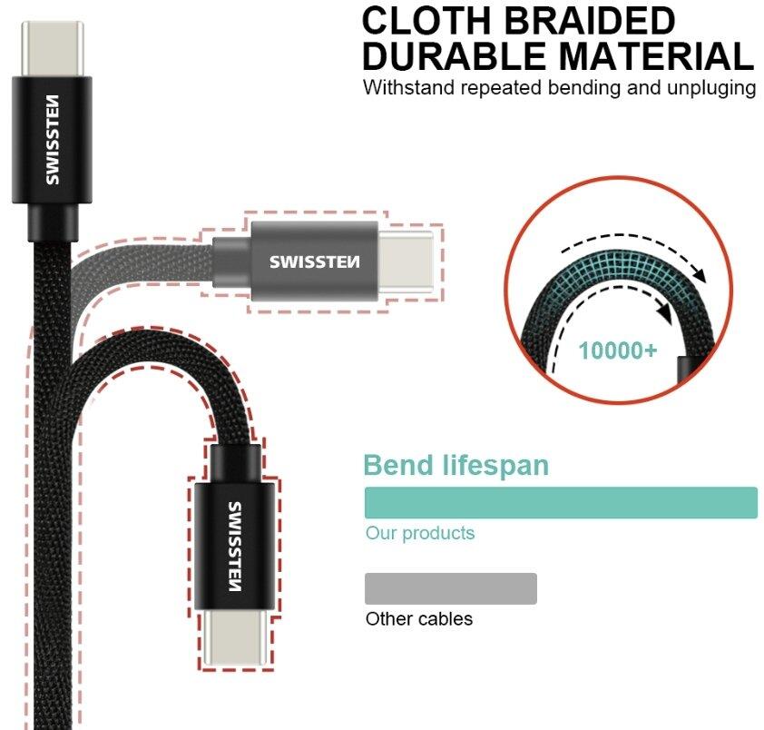 Swissten Textile Fast Charge 3A USB-C / USB-C Data and Charging Cable 1.2m
