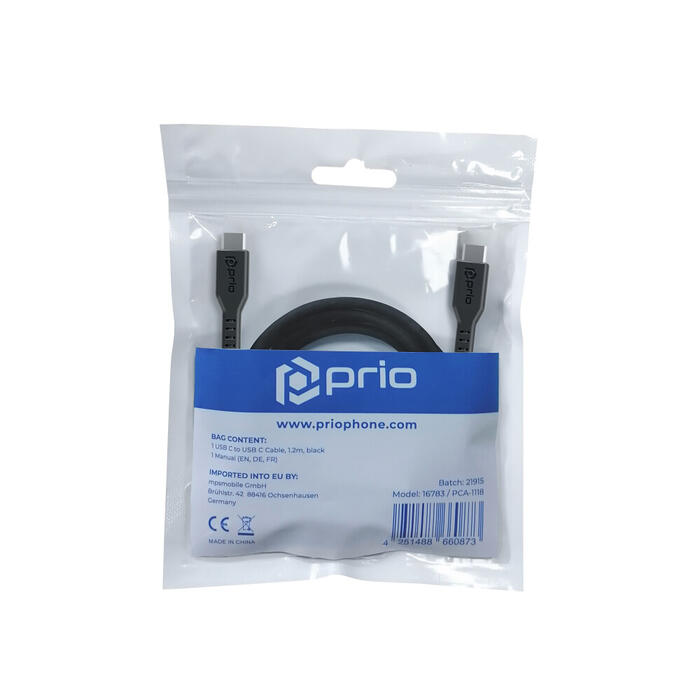 prio High-Speed Charge & Sync USB C to USB C Cable 5A 1.2m black
