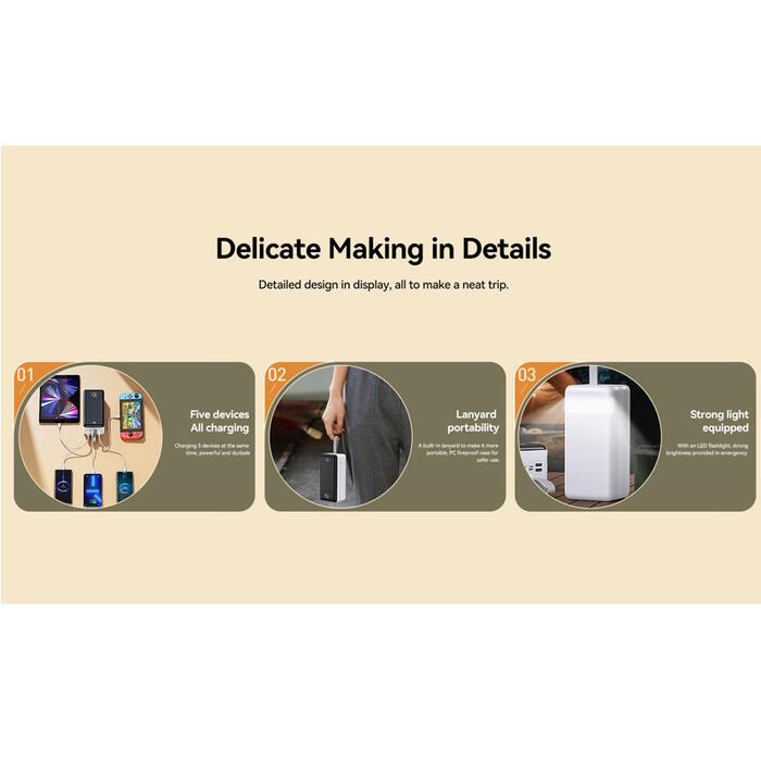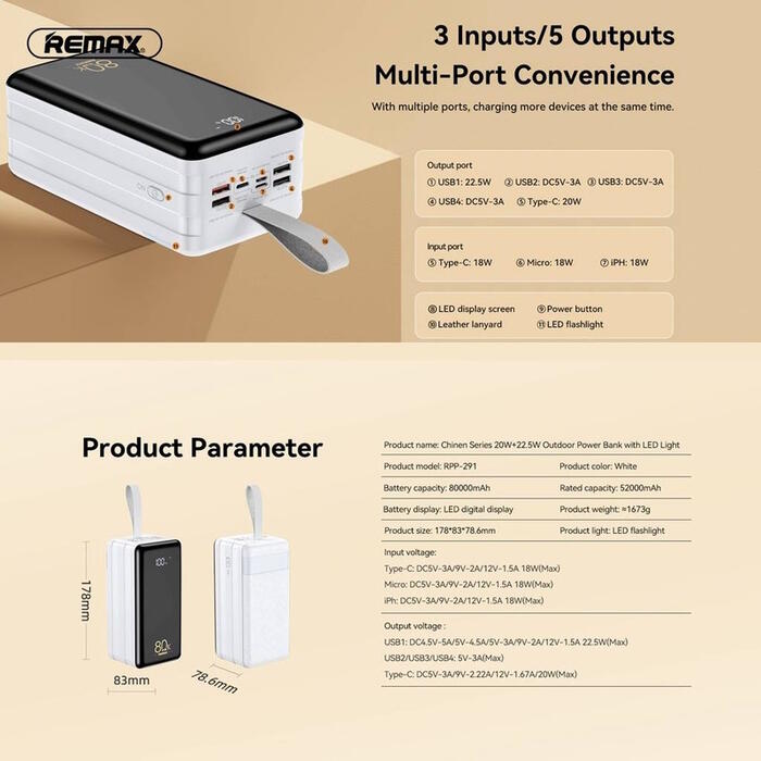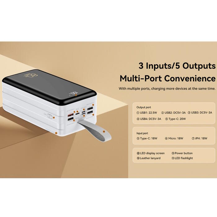 Large capacity, multiple output ports, fast charging.