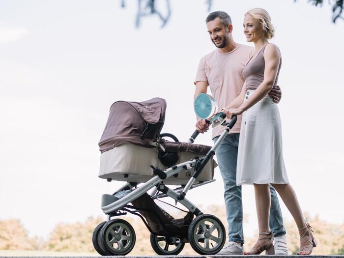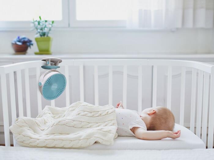 ABS ventilators  ar 5 lāpstiņu mini ventilatoru, kas aizsargāts ar Ø 14,5 cm režģi, un ar praktisku stiprinājumu  ko var piestiprināt pie jebkuras virsmas, piemēram, galdiem, plauktiem vai bērnu ratiņiem. Tīkla vai uzlādējama darbība, pateicoties komplektācijā iekļautajam USB kabelim un litija akumulatoram, kas nodrošina ierīces autonomu darbību līdz 5 stundām. LED darbības indikators, 3 izvēles ātrumi un regulējams slīpums. Ideāli piemērots ceļam vai pludmalei.