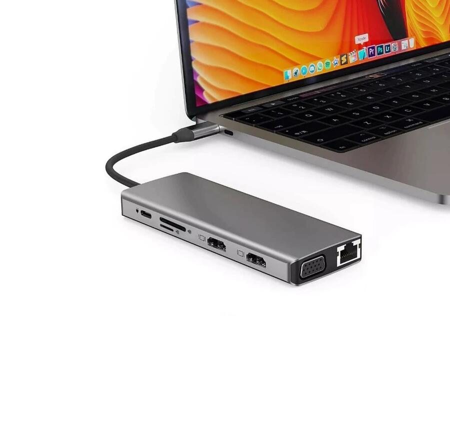 RoGer MST Dock Station 12in1 Lite Klēpjdatora dokstacija USB-C uz 2x HDMI / 4x USB3.0 / SD/TF / VGA / LAN