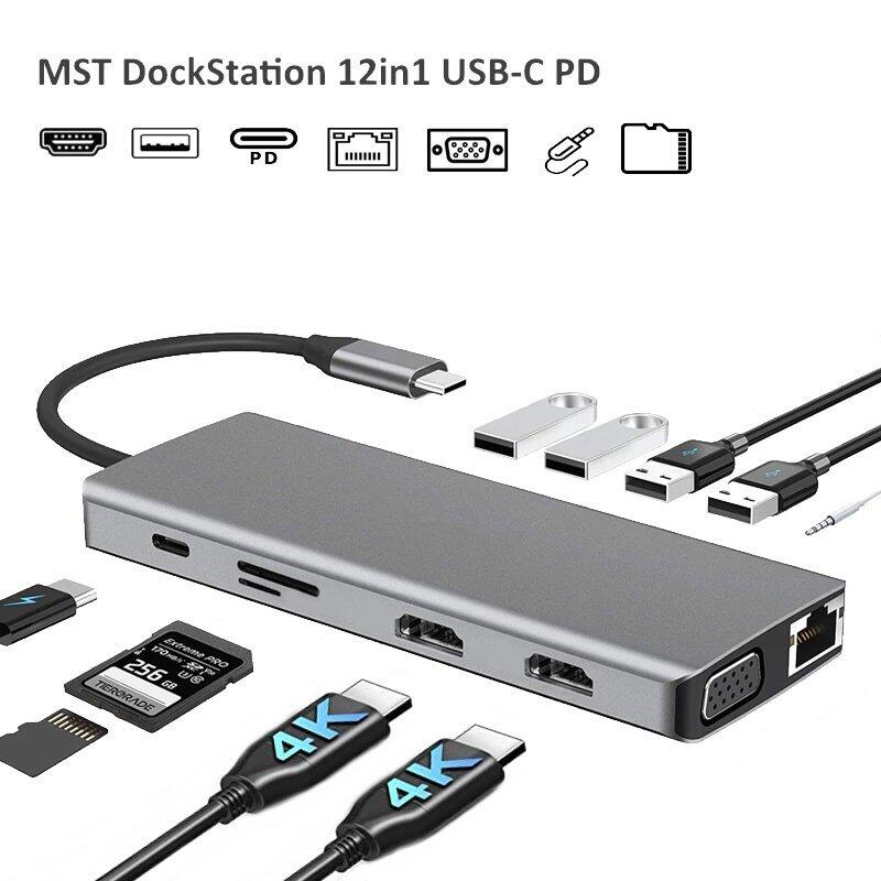 MST 12 vienā dokstacija ir ideāls risinājums tiem, kuri nevēlas pavadīt stundas, savienojot visas savas ierīces ar klēpjdatoru katru reizi, kad viņi dodas mājās no darba. Vienā mirklī pievienojiet vairākus monitorus, USB diskus, lādētāju, austiņas un citas perifērijas ierīces, izmantojot vienu USB-C portu.