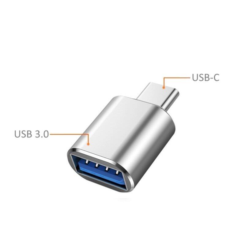 OTG Type-C adapteris savienošanai USB Type-A ierīces, piemēram,  fleškartes, tīmekļa kameras un citu Plug & Play ierīcēm.
