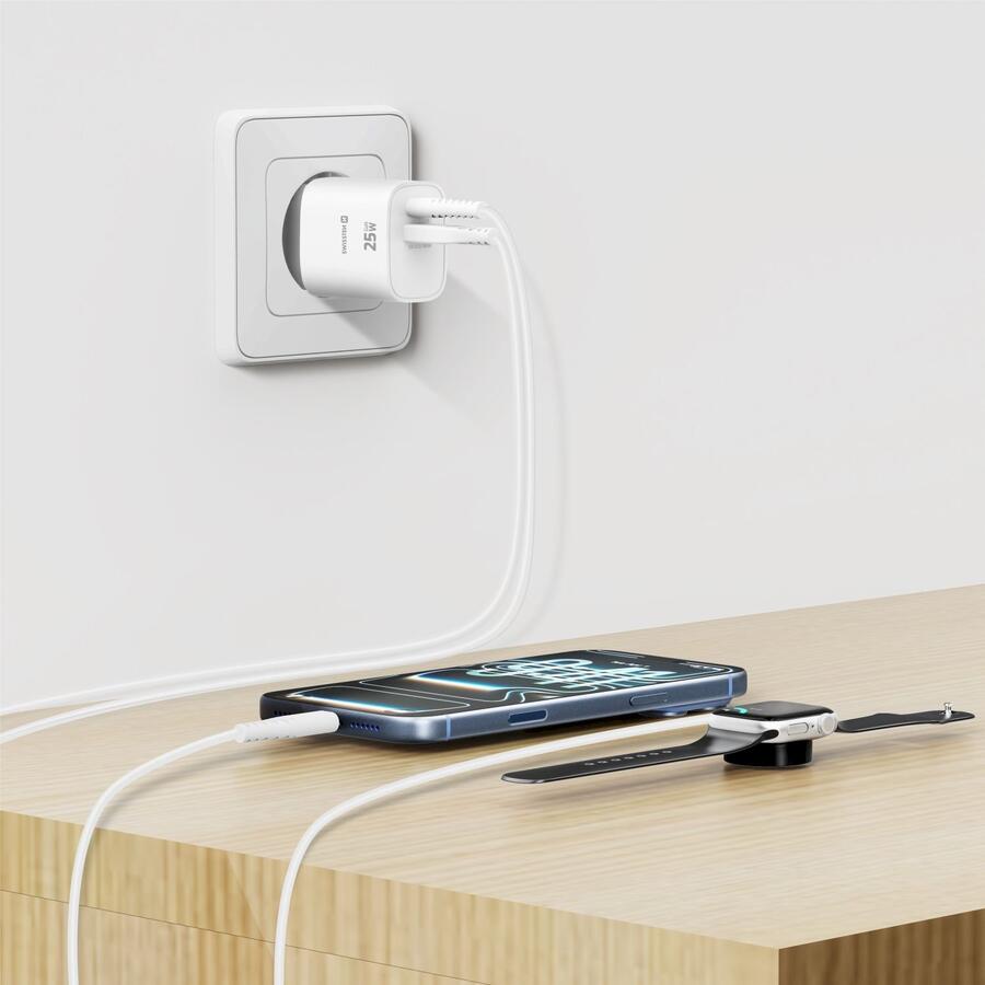 Swissten Edge Tīkla Lādētājs USB-C PD 25W + USB-A QC 18W Balts