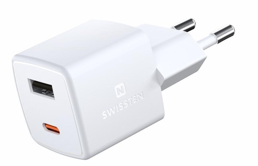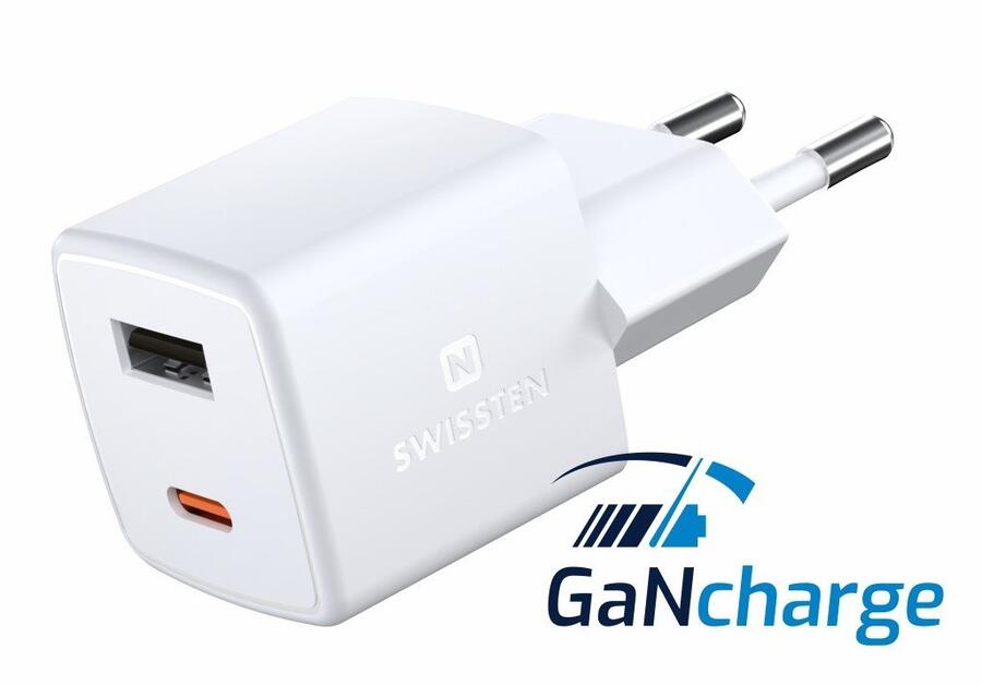 Lādētājs no jaunās SWISSTEN lādētāju sērijas ar revolucionāru GaN tehnoloģiju. USB-C un USB-A izvades portam ir Power Delivery un Qualcomm ātrās uzlādes tehnoloģija ar kopējo jaudu 30 W.