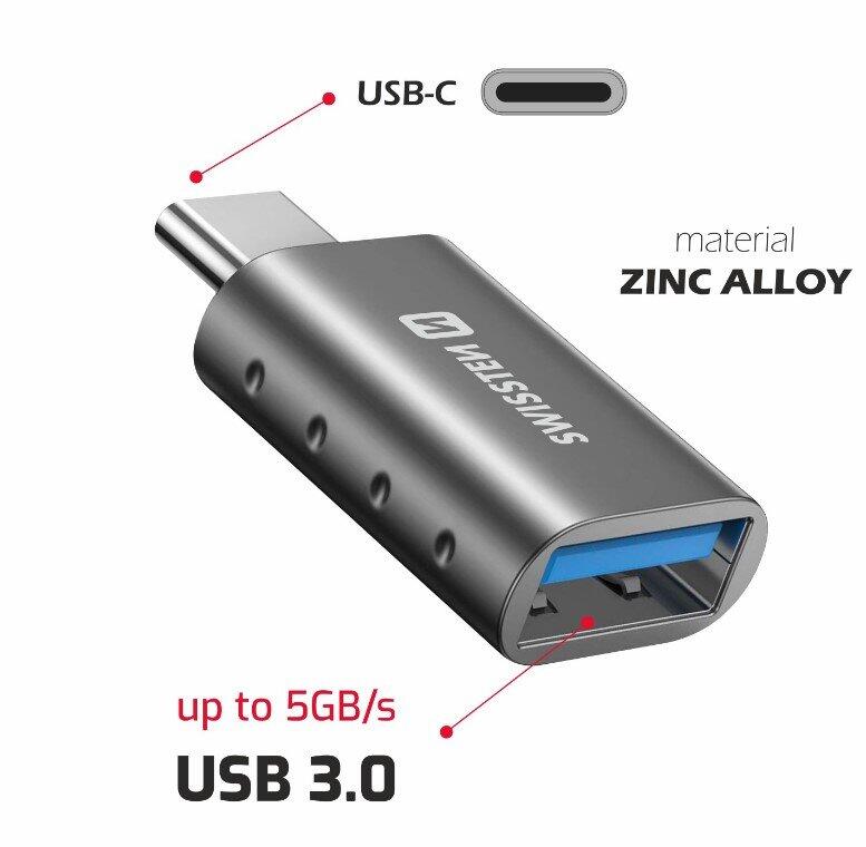 Swistten OTG USB-C Adapteris tiek izmantots, lai savienotu piederumus ar USB-A savienotāju un ierīci ar USB-C ieeju. Iepakots SWISSTEN mazumtirdzniecības iepakojumā.