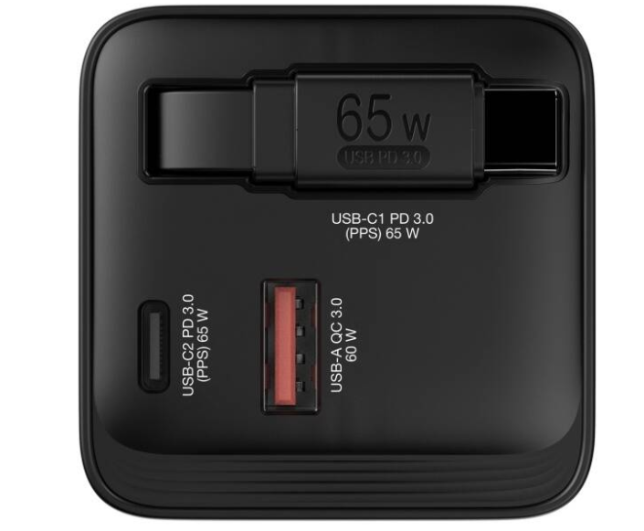 USB-C ietilpība: 5V (3A) / 9V (3A) / 12V (3A) / 15V (3A) / 20V (3.25A); PPS: 5-11V / 4.5A