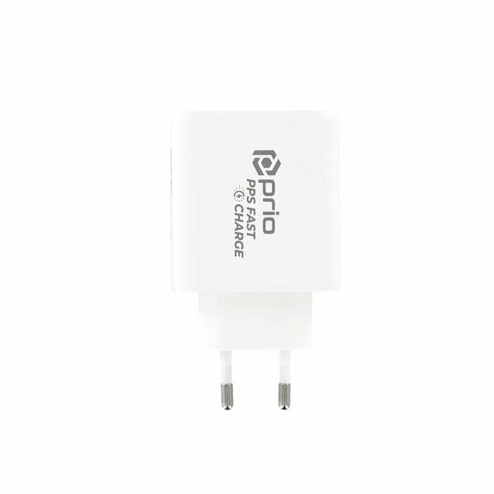 prio 50W ātrās uzlādes sienas lādētājs 30W PD PPS (USB C) + 20W PD (USB C) balts