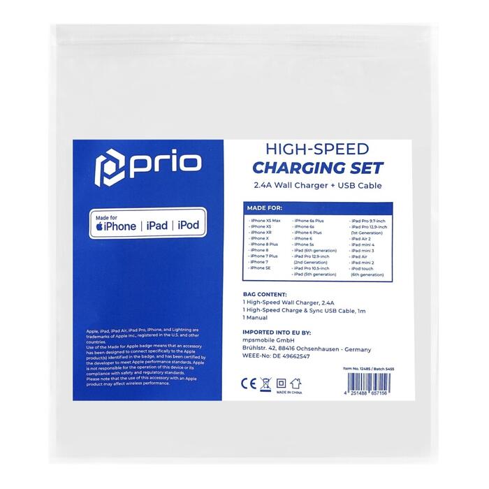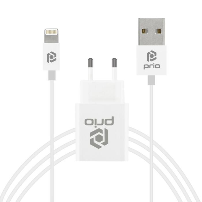 prio MFi lādēšanas komplekts (12W/2,4A lādētājs + Lightning kabelis) balts bez taras