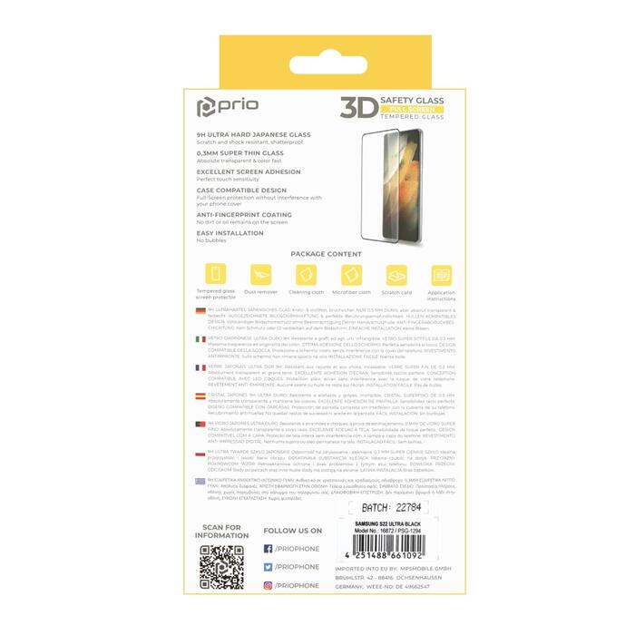 3D rūdīta stikla aizsargstikls Samsung S22 Ultra melns