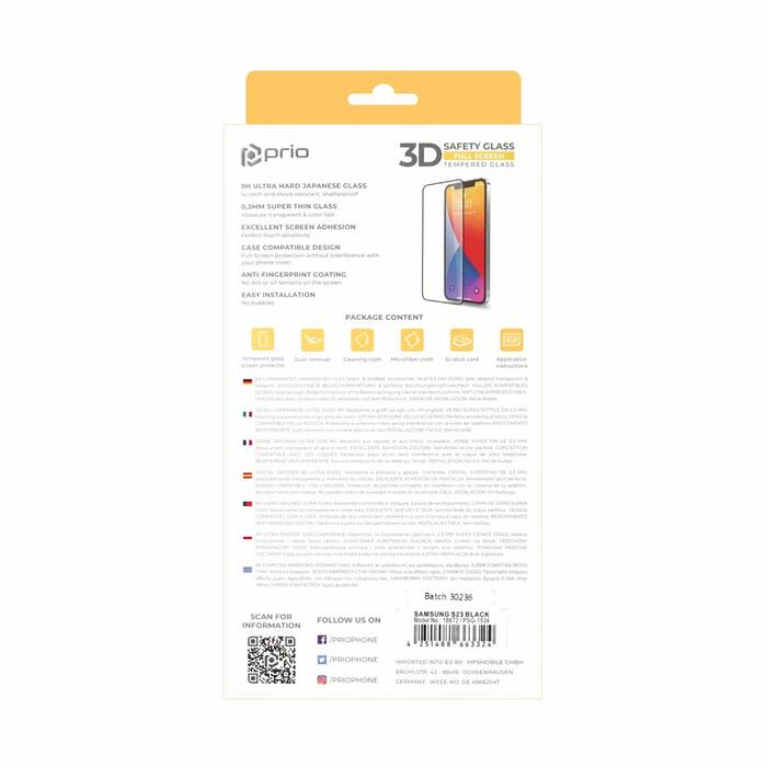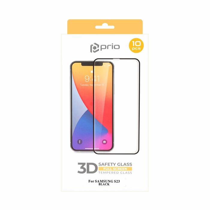 prio 10x 3D rūdīta stikla aizsargstikls Samsung s23 melns