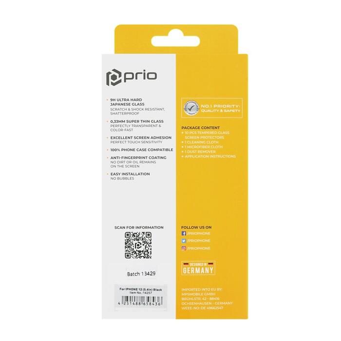 prio 10x 3D rūdīts stikls iPhone 12 mini melns