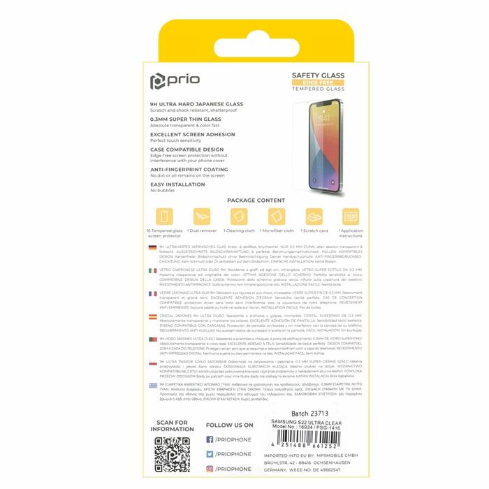 prio 10x rūdīta stikla aizsargstikls priekš Samsung S22 Ultra caurspīdīgs