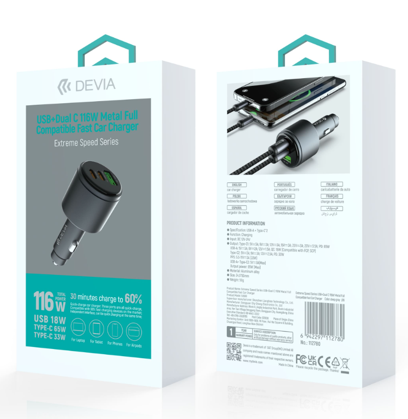 Devia Extreme Metal USB 2x USB-C Auto lādētājs