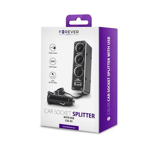 Forever splitter 3in1 auto adapteris ļauj pieslēgt trīs elektroniskās cigarešu aizdedzinātāja ligzdas vienā reizē. Ierīce ir īpaši noderīga cilvēkiem, kuri automašīnā bieži izmanto vairākas elektroniskas ierīces vienlaikus, piem. Tālrunis, klēpjdators, MP3 atskaņotājs, lādētājs utt. Adapteri var pievienot praktiski visām elektroniskajām ierīcēm, kas izmanto barošanas avota ieejas spriegumu 12 V.