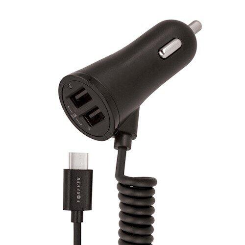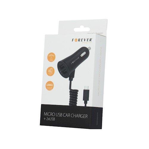 Forever Auto Lādētājs 2.4A ar Micro kabeli 2xUSB ar LED indikātoru / 1m