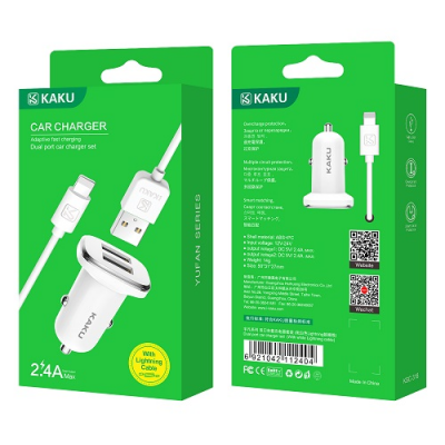 KAKU KSC-318 Auto lādētājs 2xUSB / 2.4A + Lightning 1m