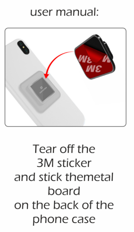 Adapteris ir universāla plāksne, kuru vienkārši piestipriniet viedtālruņa vai citas ierīces centrā. Plāksne ir aprīkota ar 3M lenti, kas droši pielīp. Pirms uzlīmēšanas ieteicams attaukot šo vietu.