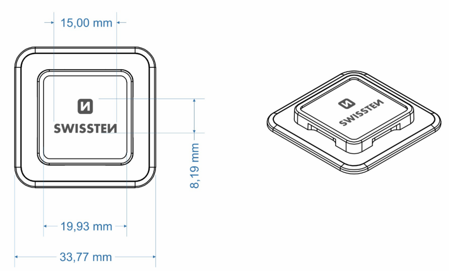 Adapteris ir universāla līmējošā plāksne viedtālruņa piestiprināšanai pie SWISSTEN EASY LOCK produktiem.