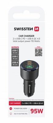 Swissten Auto Lādētājs 2x USB-C PD / USB / 95W