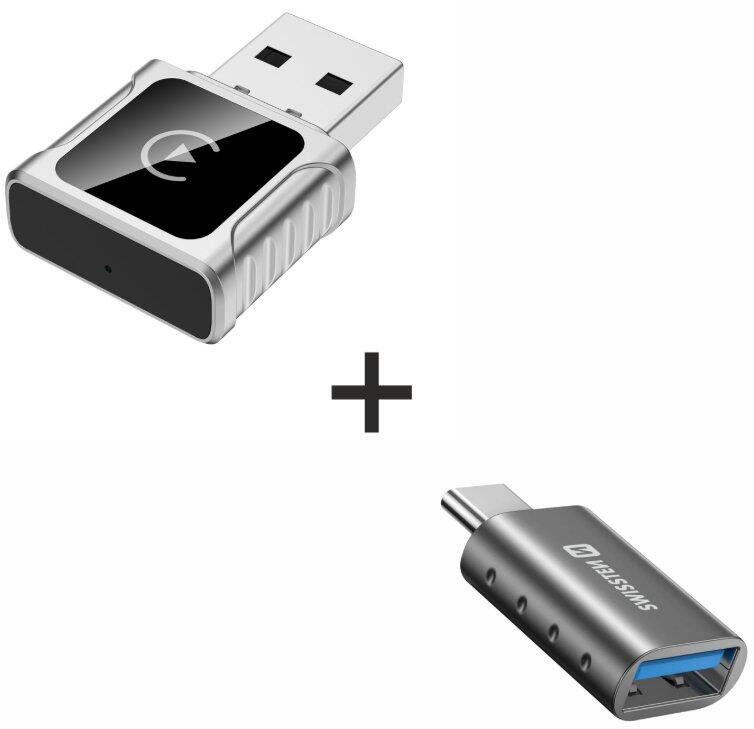 Komplektā ir iekļauts USB-A uz USB-C adapteris, tāpēc ierīci var savienot pat ar modernām automašīnām ar USB-C portu.