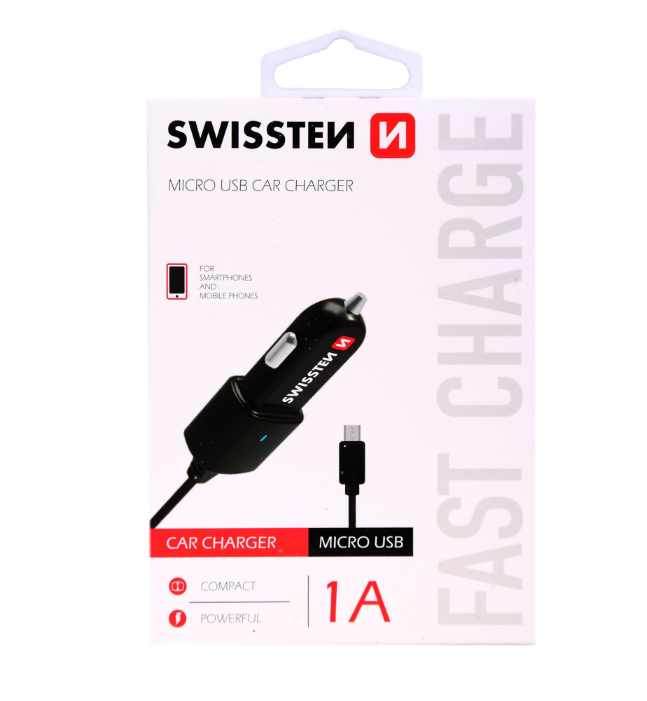 Swissten Premium Auto lādētājs mobīlajiem telefoniem un planešetdatoriem. Output: 5V / 1A Input: 12-24V