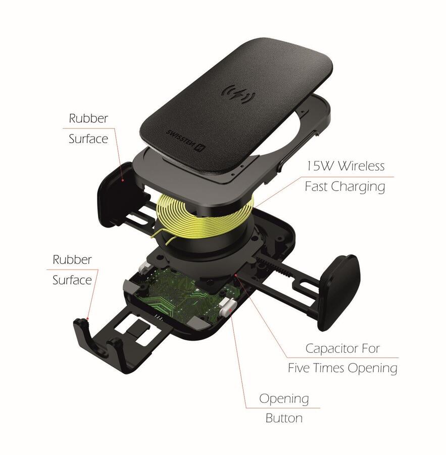 Swissten W2-HK3 Universāls Turētājs ar Bezvadu Uzlādi 15W viedtālrunim