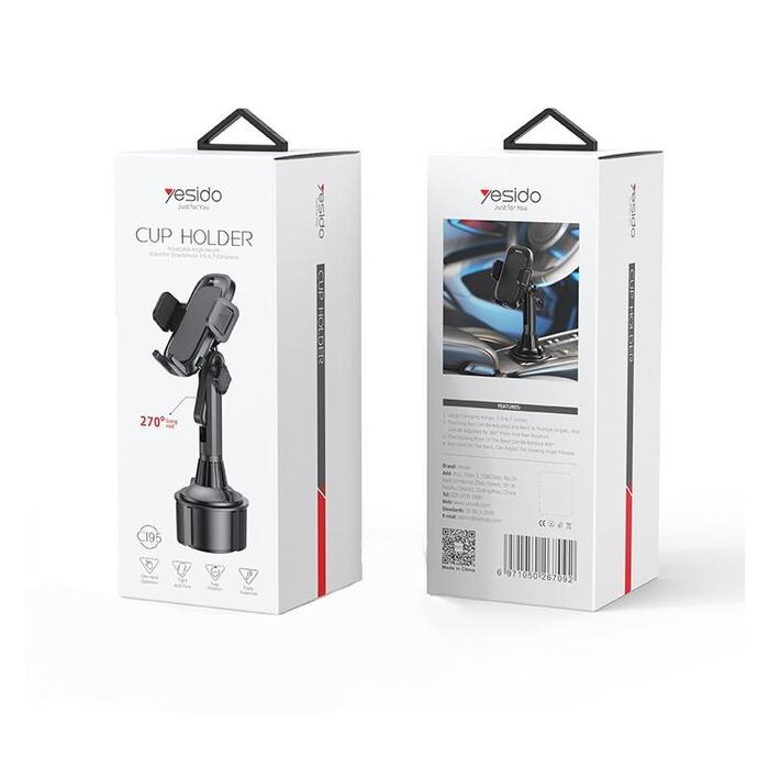 Universālais C195 turētājs no Yesido zīmola ir piederums, kas paredzēts uzstādīšanai automašīnas krūzes turētājā. No izturīgiem materiāliem izgatavotais turētājs apvieno izturīgumu un modernu dizainu. Pateicoties 360 grādu rotējošajai galviņai, turētājs ļauj viegli regulēt skata leņķi un garantē drošu tālruņa turēšanu. Teleskopiskās rokas konstrukcija ļauj elastīgi pielāgoties dažādiem tālruņa izmēriem un ērti lietot tālruni braukšanas laikā.