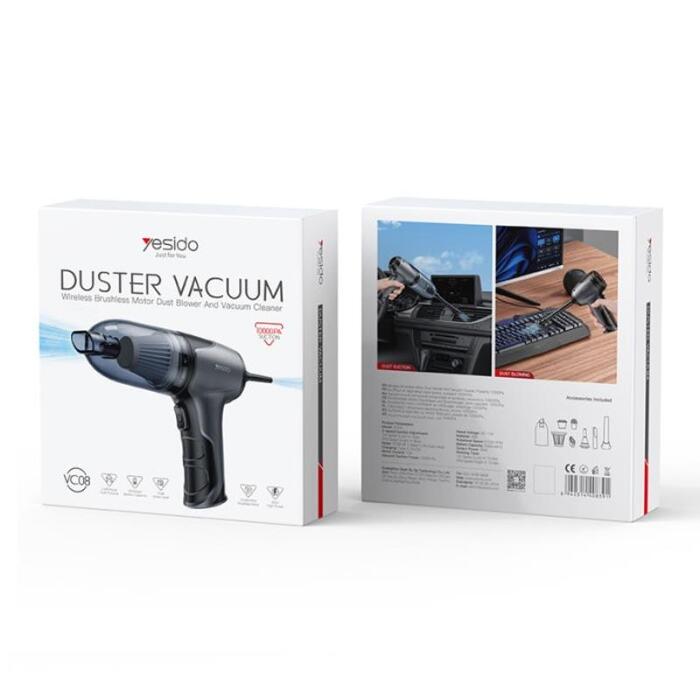 YESIDO rokas putekļsūcējs VC08 apvieno daudzpusību un ērtības vienā ierīcē. Tā ir kompakta un daudzfunkcionāla ierīce, kas ir piemērota gan mājās, gan automašīnā. Pateicoties inovatīvam dizainam, kas atbalsta sūkšanas un pūšanas funkcijas, tas piedāvā vēl plašākas tīrīšanas iespējas. Aprīkots ar 60 W motoru, putekļsūcējs nodrošina efektīvu darbību ar maksimālo sūkšanas jaudu 10 000 Pa divos darbības režīmos. Iebūvēts 4000 mAh akumulators.
