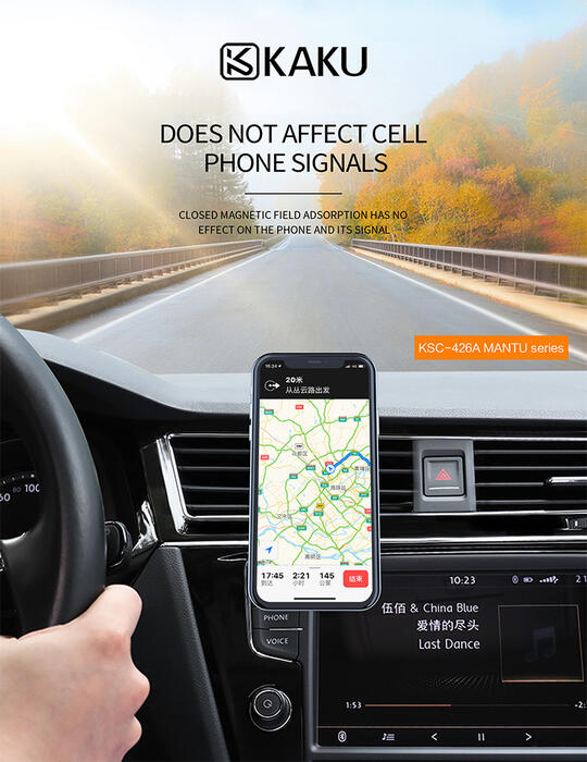 Piestiprināts pie gaisa kanāla režģa. Pateicoties savai konstrukcijai, automašīnas turētāju KAKU KSC-426A var nostiprināt jebkurā ērtā stāvoklī, lai tas darbotos pilnībā. Turētāja kompaktums veicina produkta lietošanas komfortu, jo turētājs ar uzstādīto viedtālruni netraucēs skatu no vadītāja un priekšējā pasažiera sēdekļiem. Piederumu var izmantot viedtālruņu, navigatoru, mobilo tālruņu un cita aprīkojuma uzstādīšanai. Lai salabotu aprīkojumu, tiek izmantots magnētiskais stiprinājums, kas ir uzticams, praktisks un ļoti ērts, jo viedtālruņa noņemšana un pārinstalēšana uz turētāja prasīs minimālu laiku.