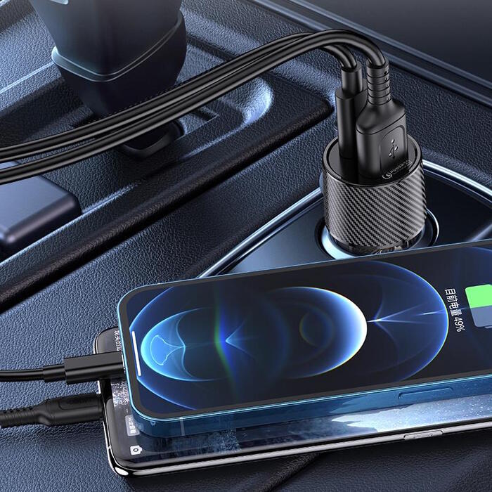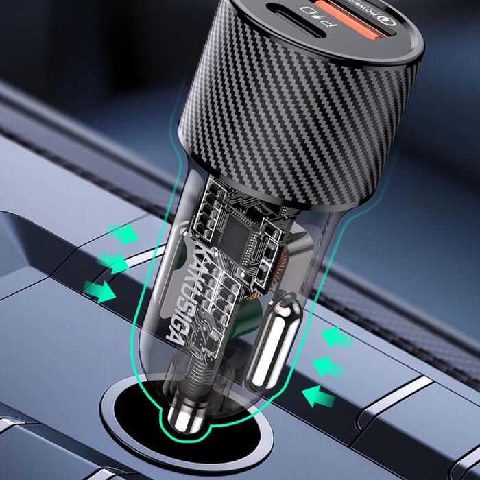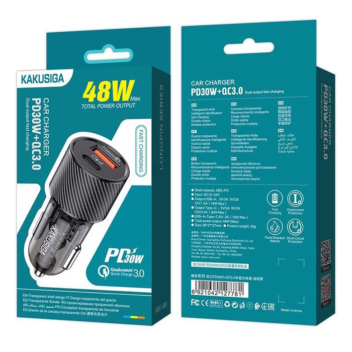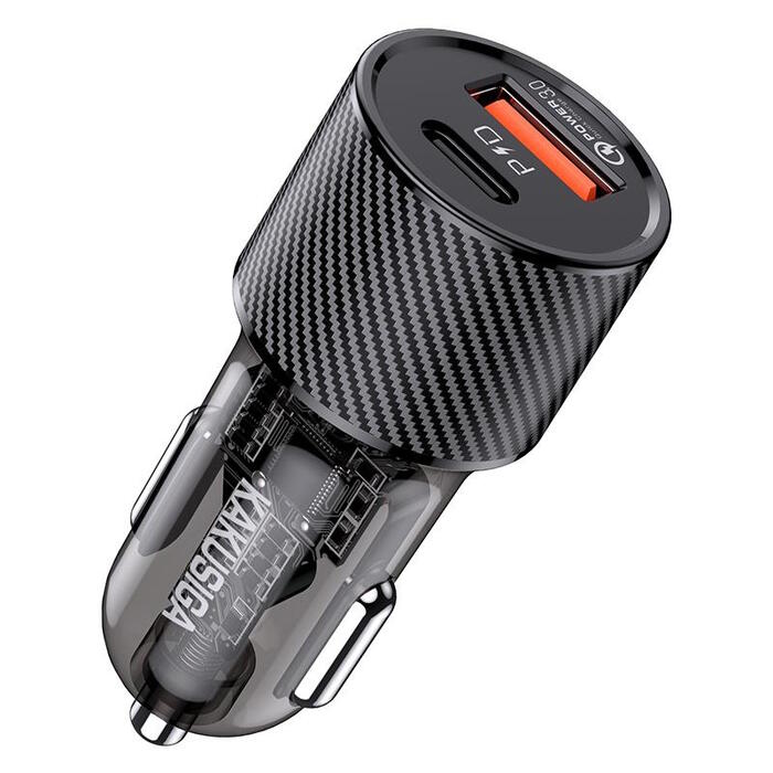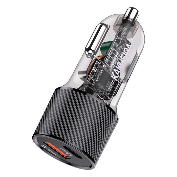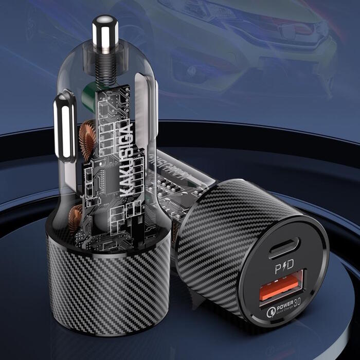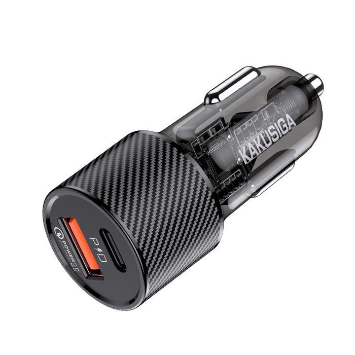 iKaku KSC-855 LONGPIN Ātrs auto lādētājs PD30W+QC3.0 ar diviem portiem Black