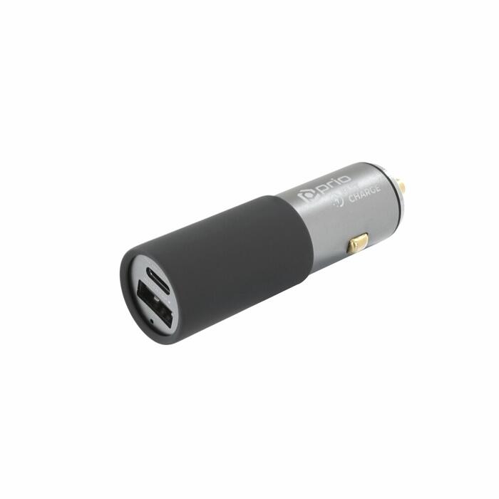 prio Fast Charge Auto lādētājs 100W PD (USB C) + 22,5W (USB A) melns