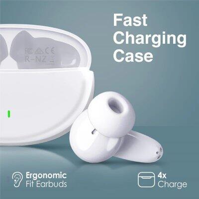 • Ātrās uzlādes funkcija: vienkārši ievietojiet austiņas makā uz 15 minūtēm un stundu baudiet mūziku. Pats korpuss tiek uzlādēts, izmantojot USB-C portu 2 stundu laikā.