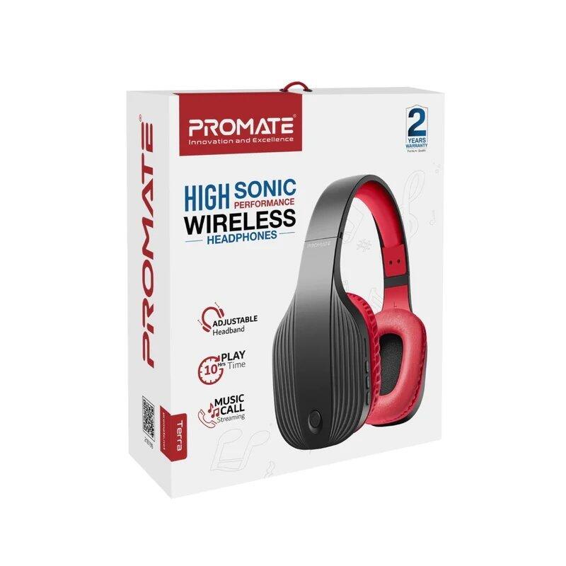 Promate Terra ir bezvadu austiņas ar Hi-Fi skaņu katrai dienai. Izbaudiet savas iecienītākās mūzikas klausīšanos ar maksimālu komfortu.