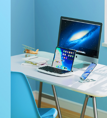 Izbaudiet ērtu lietošanu ilgu laiku. Tastatūra piedāvā augstus, apaļus taustiņus, kas darbojas klusi. Turklāt tam ir funkciju taustiņi, lai jūs varētu viegli darbināt mūzikas atskaņotāju vai pielāgot ekrāna spilgtumu. Turklāt īpašais statīvs atvieglo darbu ar planšetdatoru vai viedtālruni.