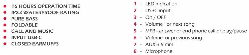 • Saderība: piemērots HFP, HSP, A2DP, AVRCP