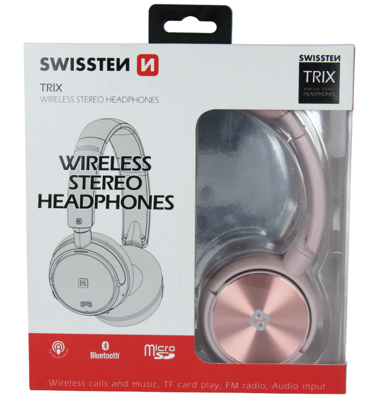 Elegantas Bluetooth austiņas ar kvalitatīvu skaņu. Austiņām ir FM uztvērējs radio klausīšanai, AUX audio ieeja ar 3,5 mm ligzdu, microSD kartes slots līdz 32GB, brīvroku mikrofons un grozāmās austiņas ērtākai mūzikas klausīšanai. Iepakots Swissten blisterī.