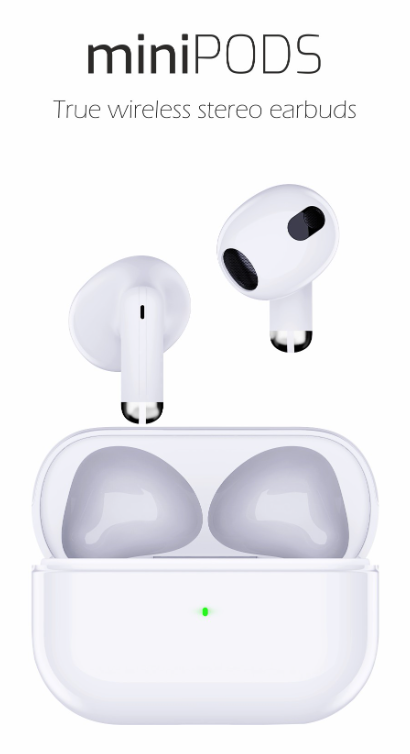 Elegantas bluetooth TWS SWISSTEN miniPODS austiņas mūzikas klausīšanai ar integrētu mikrofonu zvanīšanai.