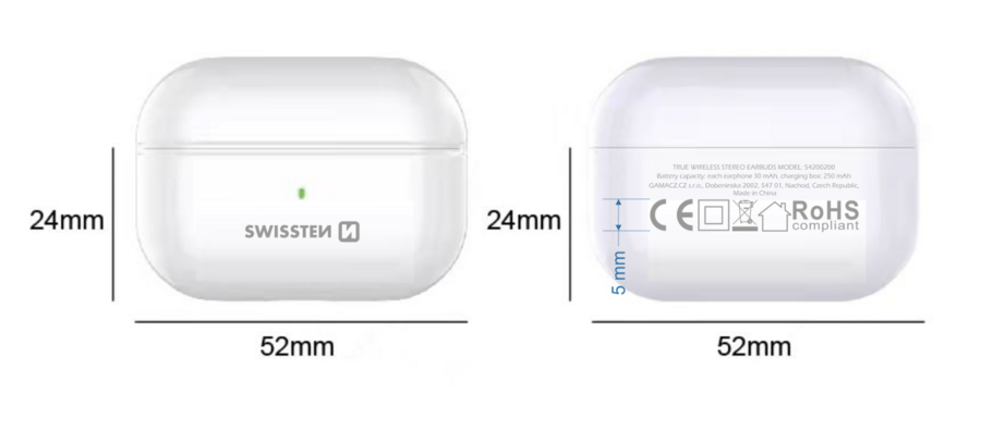 Pateicoties tā dizainam un 30mAh akumulatoram, SWISSTEN miniPODS austiņas ļauj klausīties mūziku līdz pat 4h.