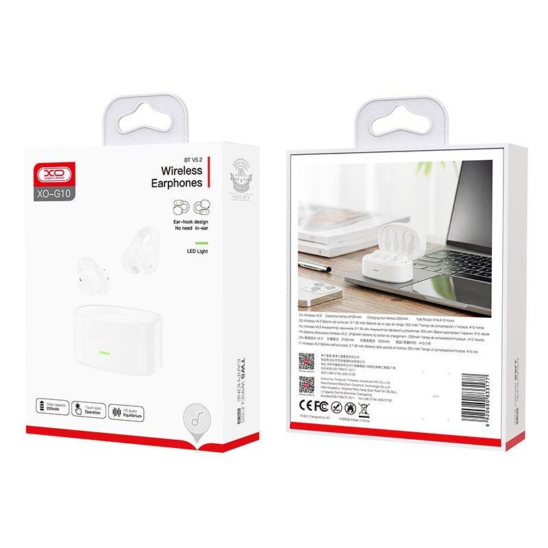 XO G10 ir Bluetooth 5.2 TWS Austiņas ar lādētāju. Austiņas atbalsta TWS (TrueWireless Stereo) tehnoloģiju - abas austiņas savienojas kopā, veidojot bezvadu stereo sistēmu. Pārnēsājama kaste ar iebūvētu akumulatoru papildus uzlādes funkcijai ļauj droši uzglabāt austiņas kabatā, somā vai mugursomā. Atbrīvojiet rokas un klausieties mūziku, interneta radio, strādājot, pastaigājoties, trenējoties vai braucot ar automašīnu. XO G10 XS austiņas ir ideāli piemērotas viedtālruņu, datoru, klēpjdatoru, planšetdatoru un citu Bluetooth iespējotu ierīču lietotājiem. Tie ir saderīgi ar lielāko daļu Android un iOS ierīču. Austiņām ir arī mikrofons, lai jūs varētu bez problēmām sarunāties ar balsi. Pateicoties Bluetooth 5.2 enerģijas taupīšanas tehnoloģijas izmantošanai, sarunas / mūzikas klausīšanās ilgums ar pilnu uzlādi ir aptuveni 300 minūtes (atkarībā no skaļuma līmeņa).
