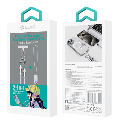 Devia 2in1 Lanyard 60W USB-C - USB-C Vads 1.2m