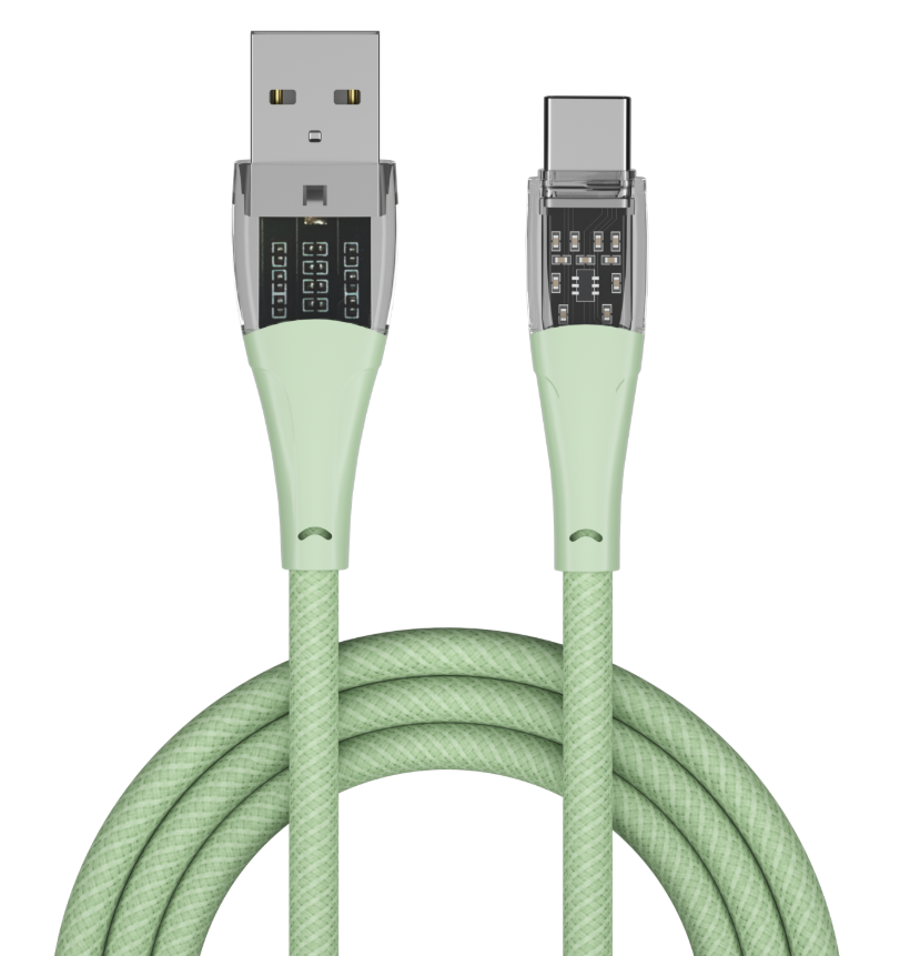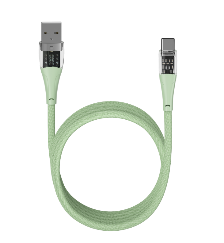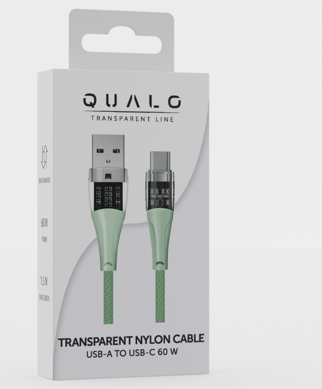 Qualo QTCN-AC-04 Transparent Nylon Kabelis USB-A – USB-C / 60W / 1.5m / zaļš