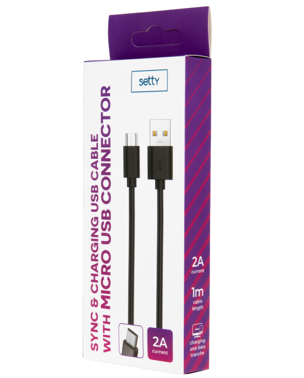 Setty Micro USB kabelis ir paredzēts ātrai datu pārraidei un drošai viedtālruņu un planšetdatoru uzlādei. Tas ir saderīgs ar visām ierīcēm, kurām ir Micro USB pieslēgvieta. Ar tā palīdzību varat savienot savu tālruni vai planšetdatoru ar klēpjdatoru, datoru vai jebkuru ierīci ar USB portu.