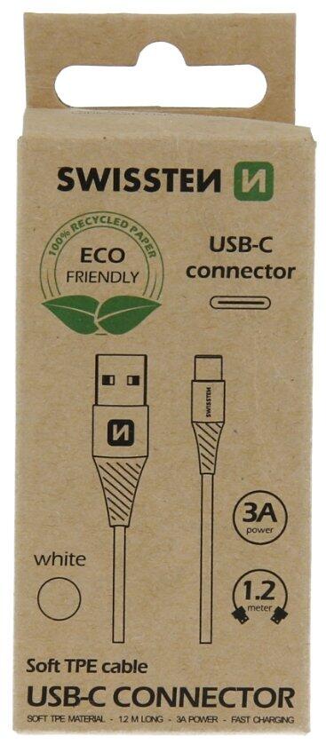Augstas kvalitātes TPE datu kabelis USB / USB-C ar garumu 1,2 m. Kabelis pastiprināts, lai nodrošinātu lielāku strāvu (līdz 3A). Iepakots Swissten ECO mazumtirdzniecības iepakojumā.