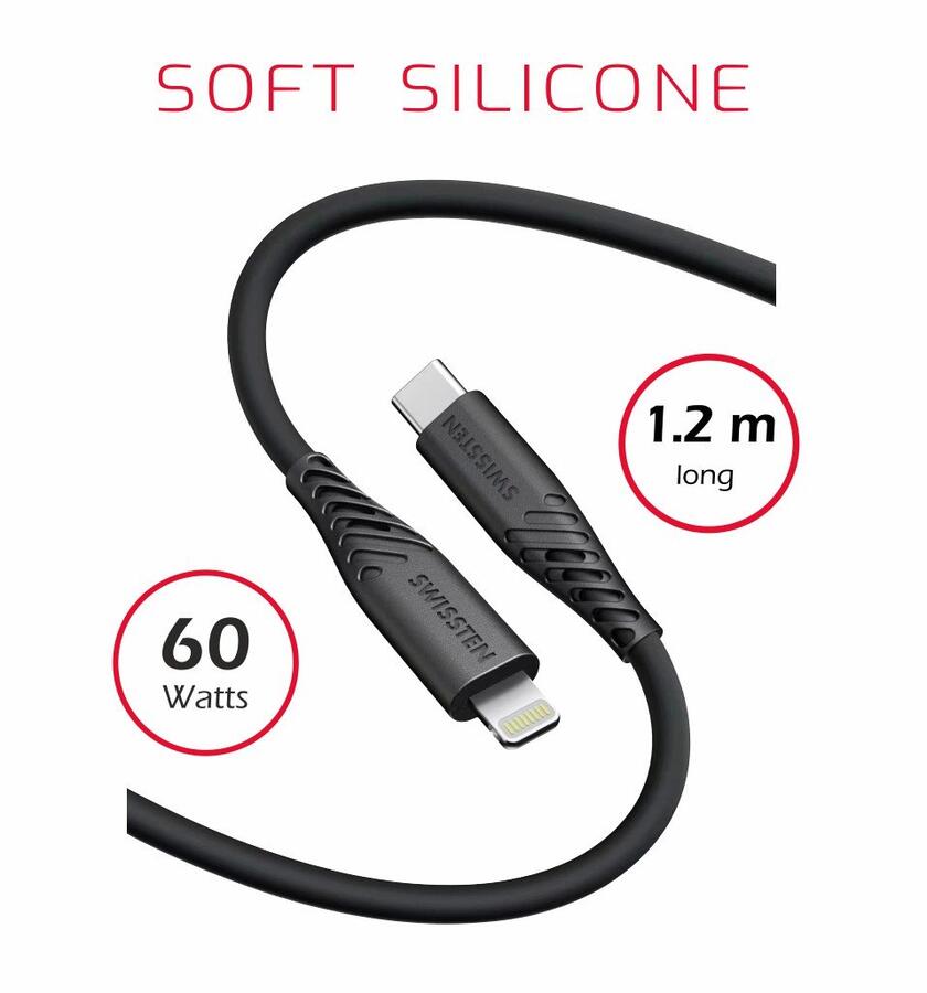 Swissten Soft Silicone USB-C - Lightning 60W Datu un Uzlādes vads 1.5m