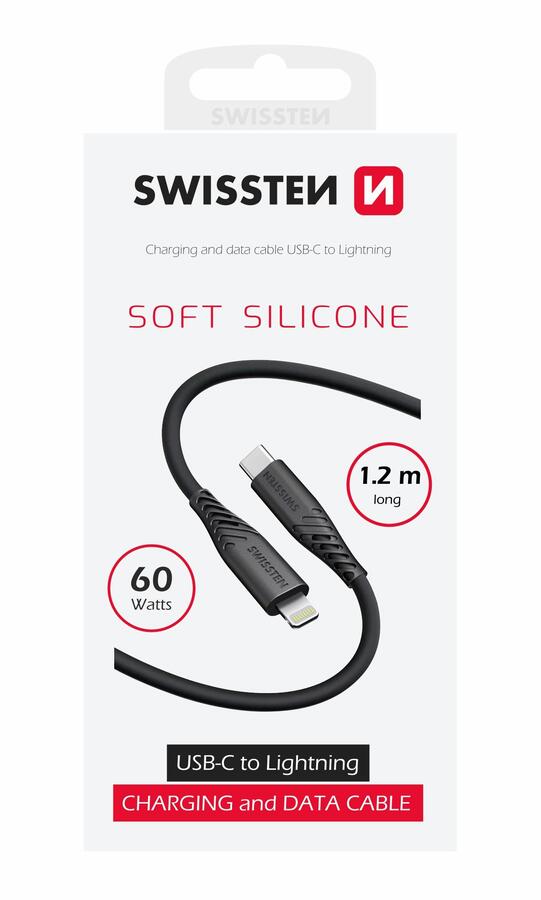 SWISSTEN SOFT SILICONE kabeli var uzlādēt ar maksimālo strāvu 3A un to var izmantot arī ātras uzlādes tehnoloģijai ar jaudu līdz 60W.